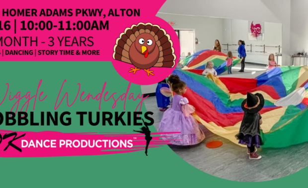 Join us for Wiggle Wednesday at our Alton location, 3100 Homer Adams Pkwy. A Mommy / Nana / Nanny and Me styled class where we do crafts, dancing, story time and more. We invite all you little Turkeys to join the fun. $30 / Child10-11 amNovember 16, 202212 Months - 3 Years RSVP Here