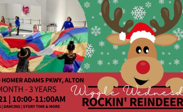 Join us for Wiggle Wednesday at our Alton location, 3100 Homer Adams Pkwy. A Mommy / Nana / Nanny and Me styled class where we do crafts, dancing, story time and more. We invite all you little Reindeers to join the fun. $30 / Child10-11 amDecember 21, 202212 Months - 3 Years RSVP Here