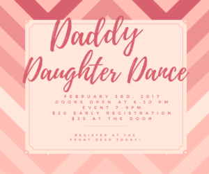 « All Events This event has passed. Daddy- Daughter Dance! February 3, 2017 @ 7:00 pm - 9:00 pm $20 « Academy Recital Costume Payment Due St. Louis Ambush Performance » Add to calendar Google Calendar iCalendar Outlook 365 Outlook Live Details Date: February 3, 2017 Time: 7:00 pm - 9:00 pm Cost: $20 Venue DK Dance Productions